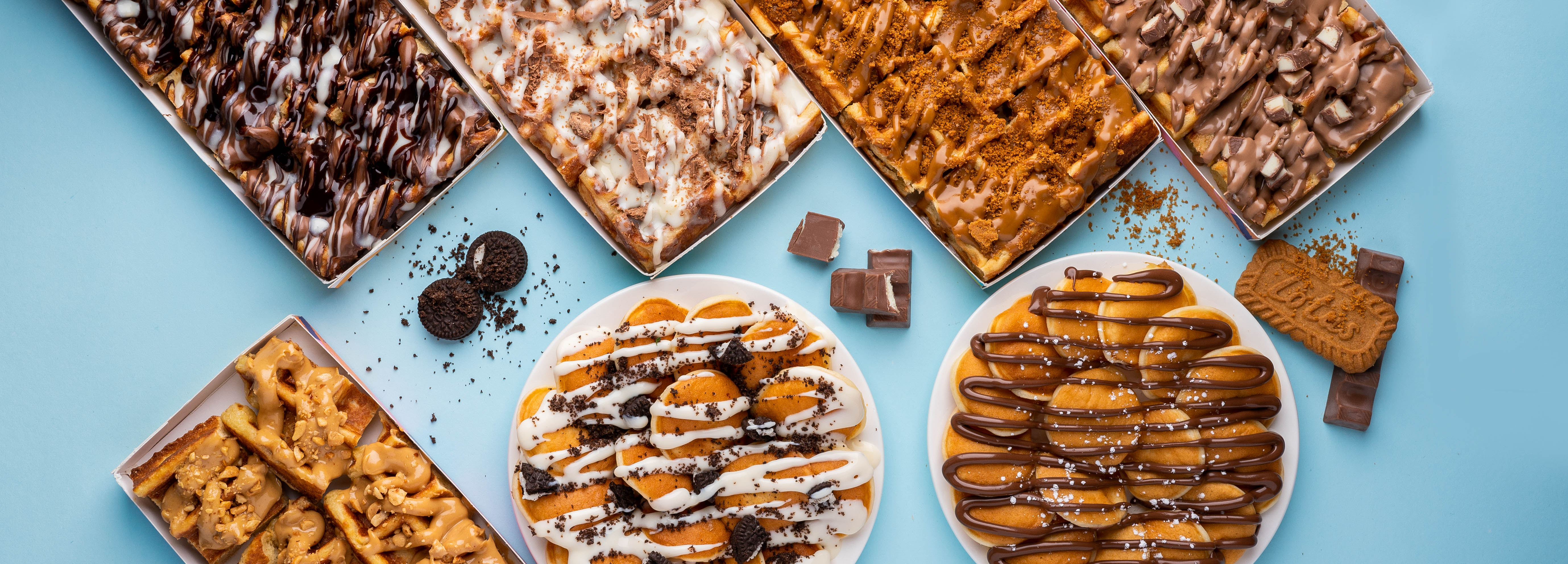For the not-so-mini appetite... or to share! 12 mini waffles stuffed and topped with Oreo crumbs and white chocolate sauce.QAR 28.50QAR 38.00Baby Galaxy Mini Waffles