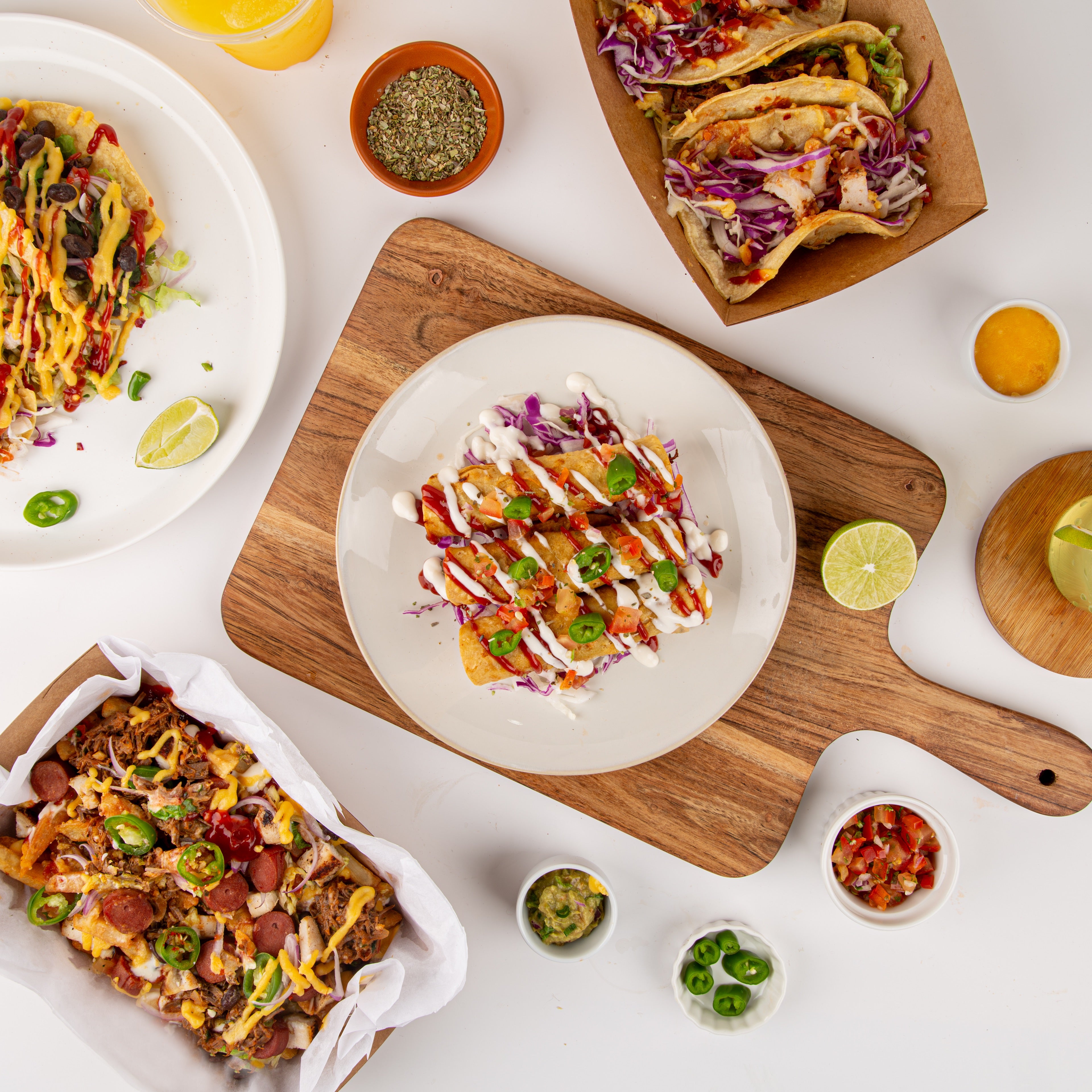 Bold Latin street flavors made fresh — from tacos and burritos to crispy patacones and cheesy quesadillas. Fast, flavorful, and always satisfyingنكهات شارع لاتينية جريئة محضّرة طازجة — من التاكو والبوريتو إلى البطاكونيس المقرمشة والكيسادياس الغنية بالجبن. سريعة، لذيذة، وتشبع!Free delivery