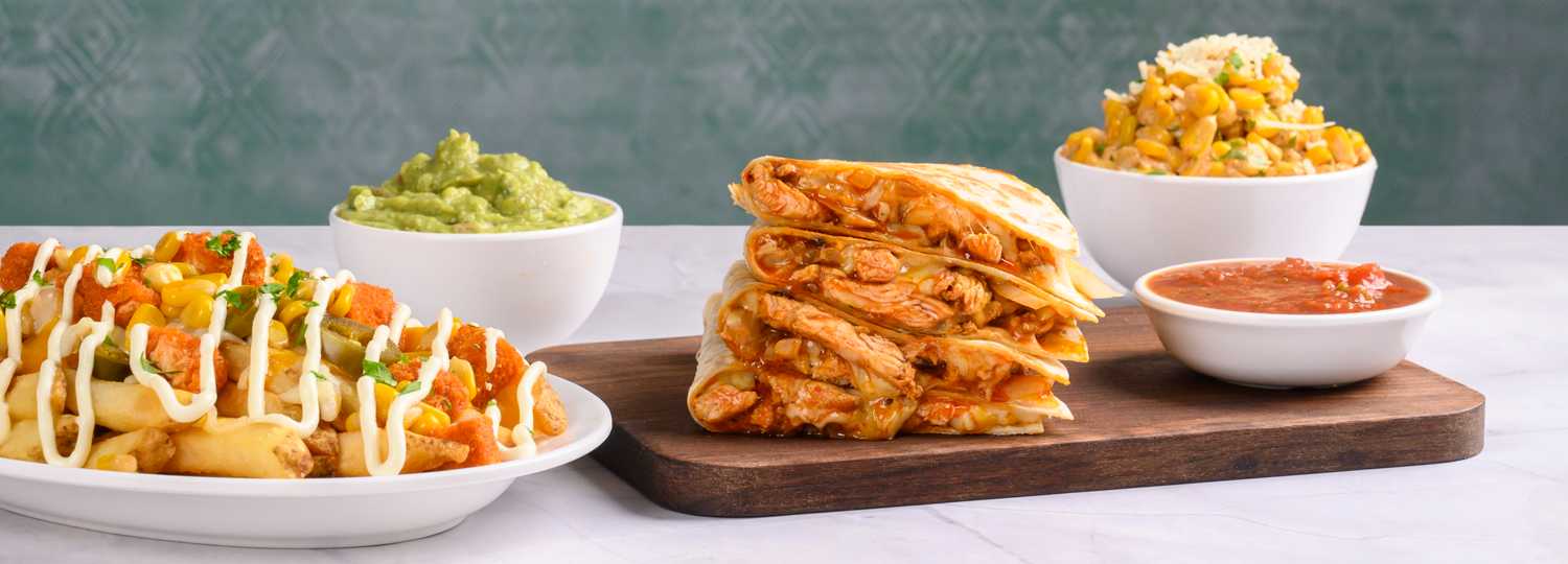 Corn tortilla chips, mixed cheese, tomato salsa, pico de gallo, guacamole, jalapenos, sour cream and coriander served with a side of cheese dip