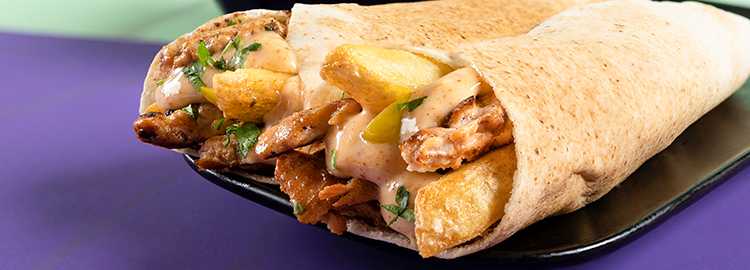 Beef, biryani rice, mixed cheese, fries, pickles, cilantro, tahini sauce.QAR 33.75QAR 45.00Chicken Shawarma Burrito